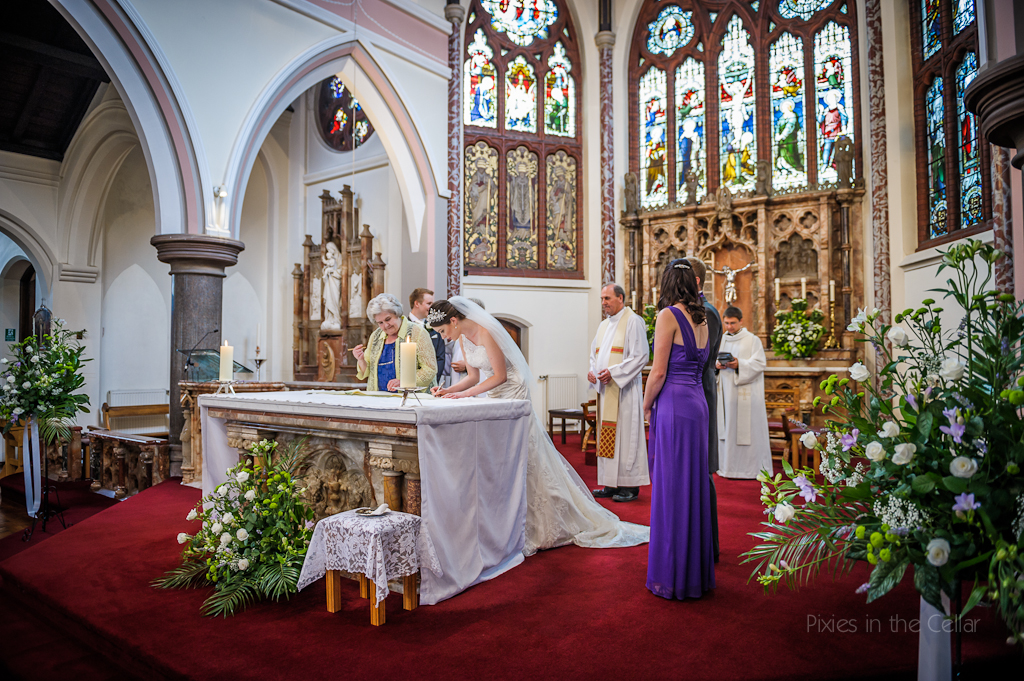 The ceremony took place at Vincent de Paul church in Altrincham, a gorgeous Victorian building, inside is most impressive and has retained all it’s original character… large, airy, dark woods but still very bright. Rebecca looked stunning walking down this aisle.